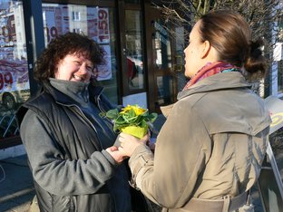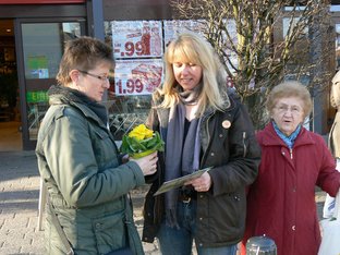 Anlässlich des 100. Internationalen Frauentages haben Shirley und Andrea am 08. März auf dem Etapler Platz Blumen und Info-Material verteilt. Wir haben uns über die durchweg positive Resonanz sehr gefreut und wünschen uns, mehr aktive Frauen in Politik und Gesellschaft zu sehen!