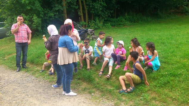 Natürlich wäre das ganze Projekt ohne die Sponsoren Getränke Lorse, BEW, Möbel Happel, Edeka Byhahn, Proroll sowie der Initiative des Bündnis 90/Die Grünen und die Mitarbeit der DLRG nicht möglich gewesen. So saßen die Initiatoren, Sponsoren und Flüchtlingsfamilien am Sonntag gemütlich beim Grillen zusammen, während die Kinder auf der Hüpfburg tobten oder sich schminken ließen.