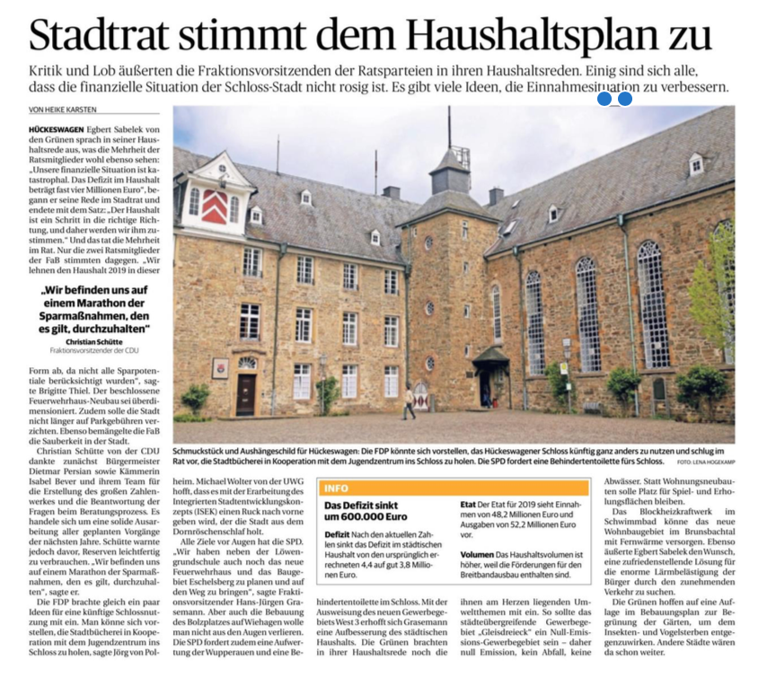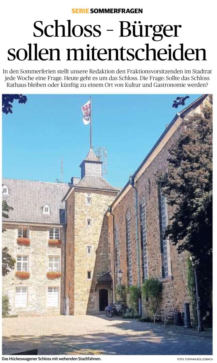 Die zukünftige Nutzung des Schlosses wird auf Dauer das Stadtleben und das Stadtbild von Hückeswagen prägen. Wir freuen uns auf die konstruktive Diskussion und begleiten diese sehr gerne.