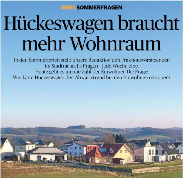 Leider haben wir für diesen „Landflucht“ kein Patentrezept parat. Tatsache ist, dass in Hückeswagen fast jeden Monat mehr Sterbefälle zu betrauern sind als Geburten zu feiern. Und allem die junge Erwachsenen zieht es in die Großstädte. Hückeswagen liegt leider auch zu weit entfernt von z.B. Köln oder Düsseldorf, um noch zu den Speckgürtel dazugerechnet zu werden und zu profitieren von den Menschen, die keine oder zu überteuerte Wohnungen finden.