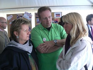 In Siegen waren die Hückeswagener schnell zu erkennen. Ihre grünen T-Shirts ("Hückeswagen überrascht") leuchteten weithin. So kam es auch schnell zu Kontaktaufnahmen. Bürgermeister Uwe Ufer und Shirley Finster, Ortsverbandsvorsitzende der Grünen, konnten auf diesem Wege Sylvia Löhrmann einladen. Die Ministerin für Schule und Weiterbildung will sich in der Schlossstadt über die aktuelle Situation informieren und auch über die Entwicklung diskutieren. Als Solingerin kennt sie nicht nur den Weg nach Hückeswagen, sie kennt auch die Probleme der bergischen Region.